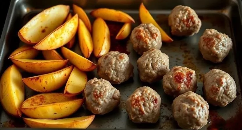 Котлеты с картошкой в духовке – это полноценный обед или ужин, который не требует много времени на приготовление. Просто выкладываем котлеты и нарезанный картофель на противень, добавляем немного специй и запекаем до готовности. Я люблю добавлять к картофелю немного чеснока и розмарина – это придает ему неповторимый аромат. А еще можно посыпать картофель тертым сыром за 10 минут до готовности – получится золотистая корочка!