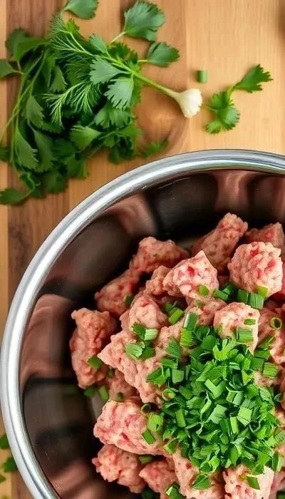Шаг 2: Добавление зелени. Мелко нарежьте укроп и петрушку. Добавьте зелень в фарш и еще раз тщательно перемешайте. Зелень придаст котлетам свежий аромат и вкус. Если вы используете шпинат, его необходимо предварительно припустить и мелко нарезать.