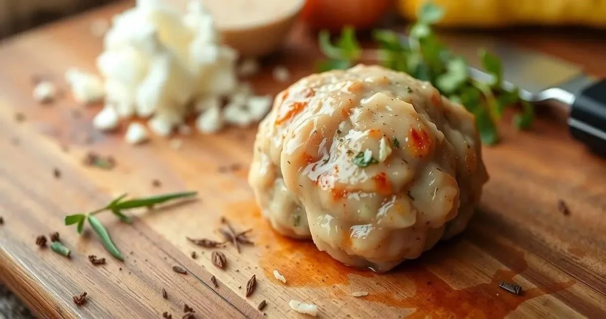 - Подготовьте фарш: смешайте выбранный фарш с мелко нарезанным луком, измельченным чесноком, яйцами, панировочными сухарями и специями. Тщательно вымесите фарш, чтобы он стал однородным.