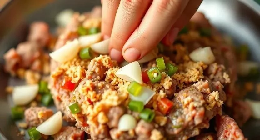 - Замешивание фарша: Тщательно перемешайте фарш руками, чтобы все ингредиенты равномерно распределились. Не переусердствуйте, чтобы котлеты не получились слишком плотными.