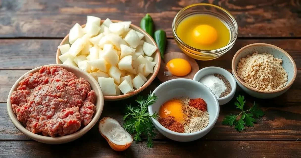 1. В глубокой миске смешайте фарш, мелко нарезанный лук, яйцо, панировочные сухари, молоко или воду, соль, перец и специи.