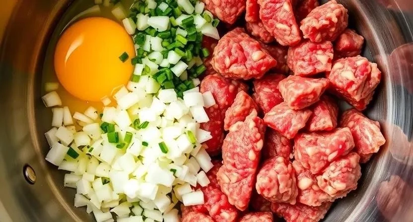- Говяжьи котлеты: Используйте говяжий фарш. Добавьте немного красного вина и специй для мяса.
