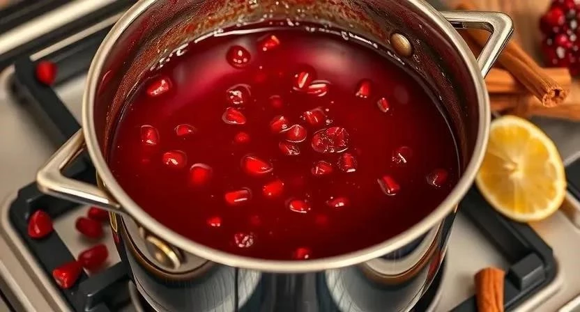 - В кастрюлю влить гранатовый сок, добавить сахар, соль и специи.