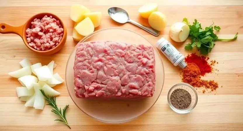 - Подготовка фарша: В большой миске смешайте фарш, размягченный хлеб, обжаренный лук, яйцо, соль и перец. Тщательно перемешайте.