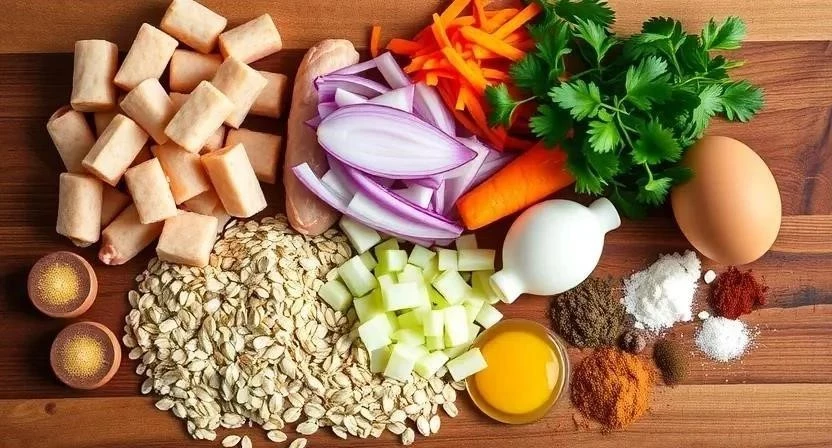 Для приготовления этих замечательных котлет нам понадобится совсем немного ингредиентов. Я всегда стараюсь выбирать самые свежие и качественные продукты, ведь от этого напрямую зависит вкус блюда. Фарш лучше брать куриный или индейки – он более диетический. А овсяные хлопья я предпочитаю брать не быстрого приготовления, а цельнозерновые – в них больше пользы. Качественный фарш можно найти в проверенных мясных лавках или супермаркетах с хорошей репутацией. Овсянку я обычно покупаю в магазинах здорового питания, там она всегда свежая и без добавок.