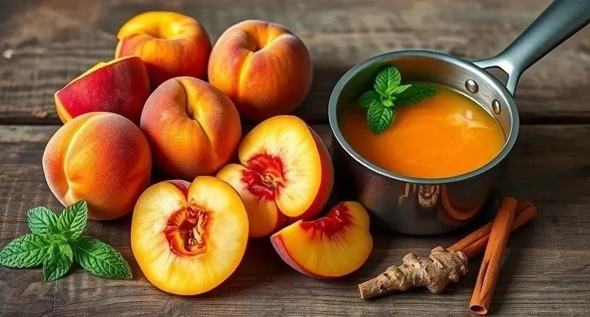 - Доведите соус до кипения и тушите на медленном огне 10-15 минут, пока персики не станут мягкими.