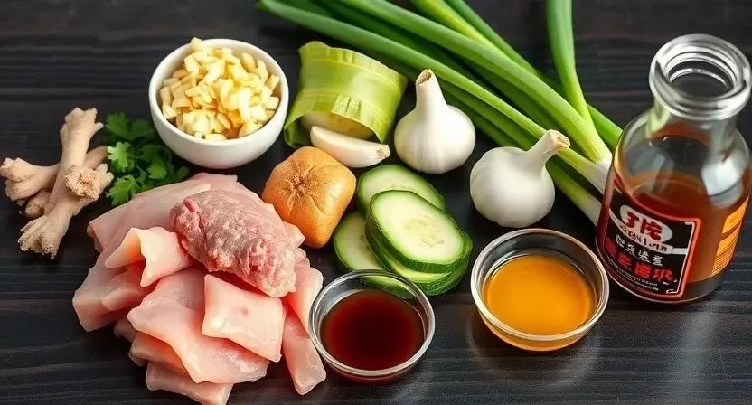 - Смешивание ингредиентов: В большой миске смешать фарш, обжаренный лук с чесноком, яйцо, соевый соус, крахмал, тертый имбирь, соль и перец. Тщательно перемешать до однородной массы.