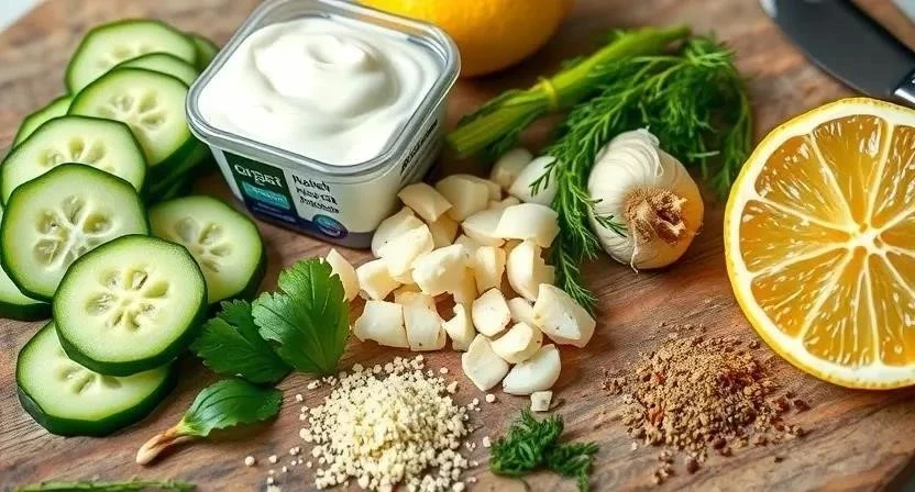Для приготовления этого блюда нам понадобятся следующие ингредиенты. Я всегда стараюсь выбирать самые свежие продукты, ведь от этого напрямую зависит вкус готового блюда. Кстати, греческий йогурт для цацики можно найти в крупных супермаркетах или специализированных магазинах.