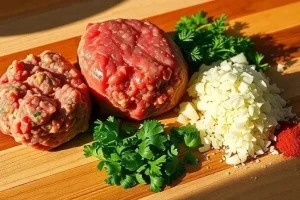 - 500 г фарша (смешанный говядина и свинина – идеально)