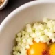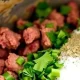 - Подготовьте фарш: смешайте его с мелко нарезанным луком, яйцом, солью, перцем и специями.
