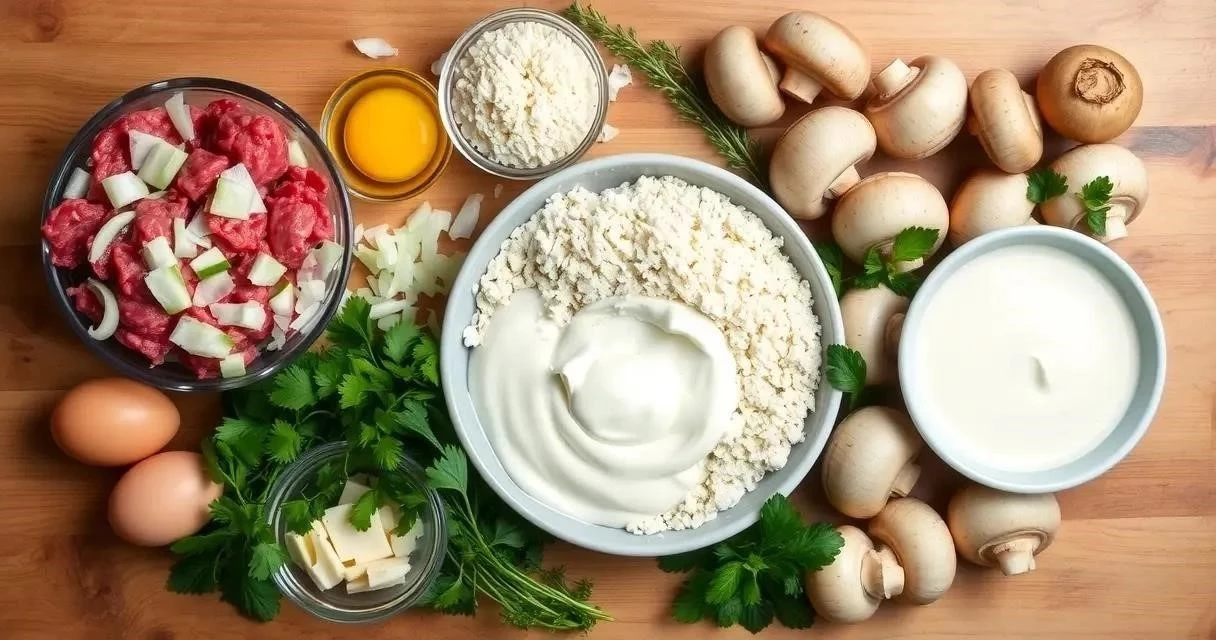 Для приготовления этого блюда нам понадобятся только самые свежие и качественные ингредиенты. Я всегда стараюсь выбирать фарш из говядины и свинины в соотношении 50/50 – так котлеты получаются особенно сочными. А грибы лучше брать свежие шампиньоны или вешенки, но можно использовать и замороженные. Вот полный список: