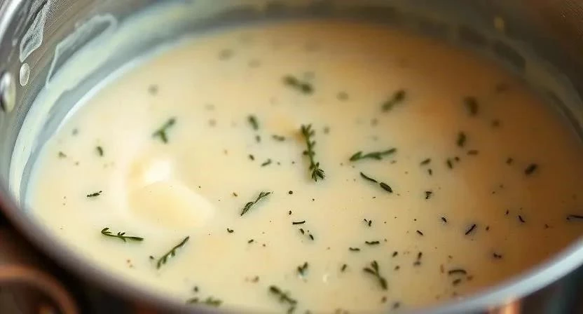 - Постепенно влейте сливки, постоянно помешивая, чтобы не образовались комки.