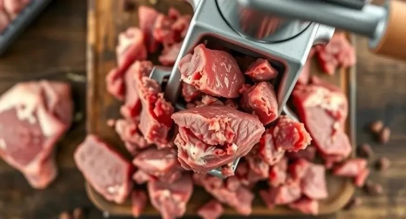 - Подготовьте фарш: Пропустите кабанятину через мясорубку или попросите продавца сделать это за вас. Убедитесь, что в фарше нет жил и пленок.