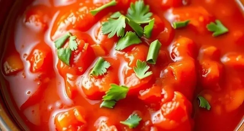 - Как приготовить соус? Смешайте помидоры, кинзу, чеснок, перец чили, сок лимона, соль и сахар в блендере.