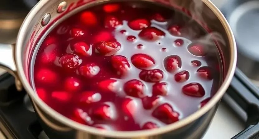 8. В сотейнике смешать бруснику, портвейн и сахар. Довести до кипения и варить на медленном огне 15-20 минут, пока брусника не станет мягкой.