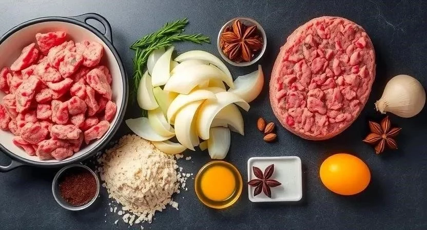 Для приготовления настоящих котлет из лосятины нам понадобятся следующие ингредиенты: