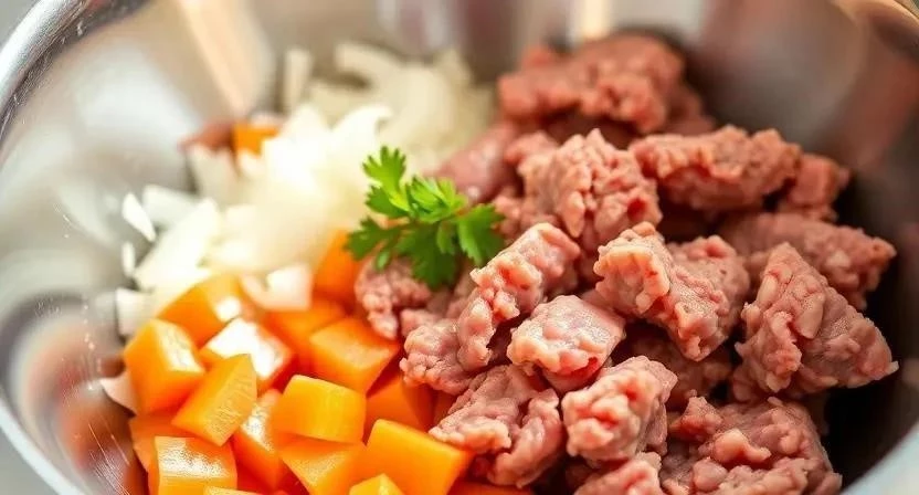 2. Смешивание фарша: В большой миске соедините фарш из оленины, тертую морковь и лук, измельченный чеснок, яйцо, панировочные сухари, соль, перец и специи. Тщательно перемешайте все ингредиенты до однородной массы.