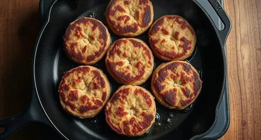 - Разогрейте растительное масло в сковороде. Выложите котлеты и обжаривайте с обеих сторон до золотистой корочки. Обычно это занимает около 5-7 минут с каждой стороны.