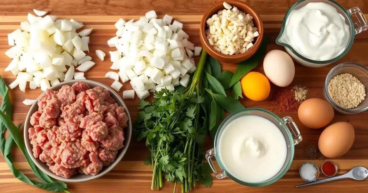 Для приготовления этого блюда нам понадобятся следующие ингредиенты. Я всегда стараюсь выбирать свежее мясо и качественные специи – это залог вкусного результата. Кстати, фарш можно взять любой – говяжий, свиной, куриный или смешанный. Главное, чтобы он был не слишком жирным.