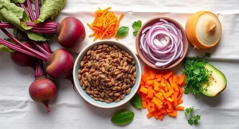 Свекла и чечевица – это настоящая кладезь полезных веществ. Свекла, известная своим насыщенным цветом, богата антиоксидантами, которые помогают бороться с воспалениями и защищают клетки организма. Чечевица же является отличным источником растительного белка, клетчатки и железа. Эти два ингредиента прекрасно дополняют друг друга, создавая блюдо, которое не только вкусно, но и полезно для здоровья. Традиционно свекла использовалась в народной медицине для улучшения пищеварения и укрепления иммунитета, а чечевица была основным продуктом питания в древних цивилизациях благодаря своей питательной ценности.
