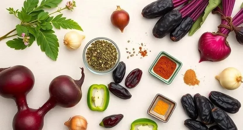Свекла и финики – это настоящие кладези витаминов и минералов. Свекла богата клетчаткой, витаминами группы B, калием и железом. Финики содержат витамины A, C, B, калий, магний и клетчатку.