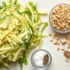 - Капусту тонко нашинкуйте и слегка присолите. Оставьте на 15-20 минут, чтобы она пустила сок.