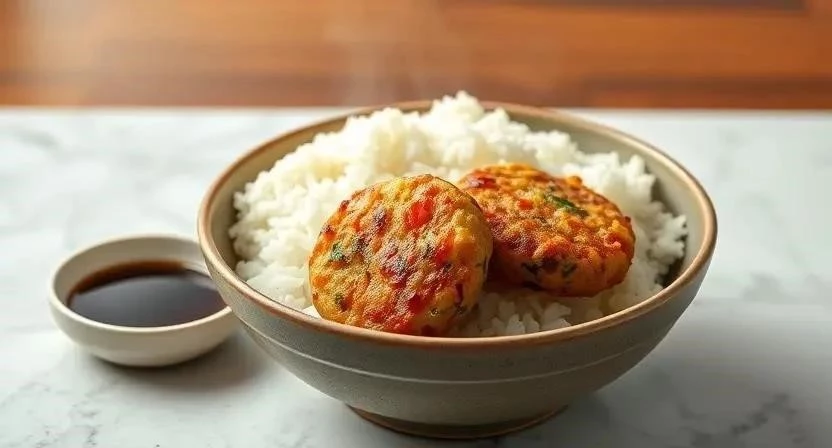 Я люблю подавать эти котлеты с рисом и овощным салатом, полив их небольшим количеством соевого соуса.