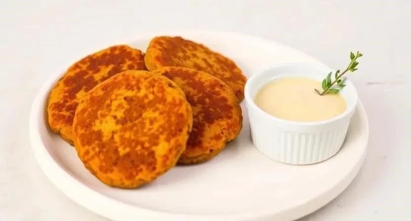 - Подавайте морковные котлеты с легким сметанным соусом или йогуртовым соусом с зеленью.