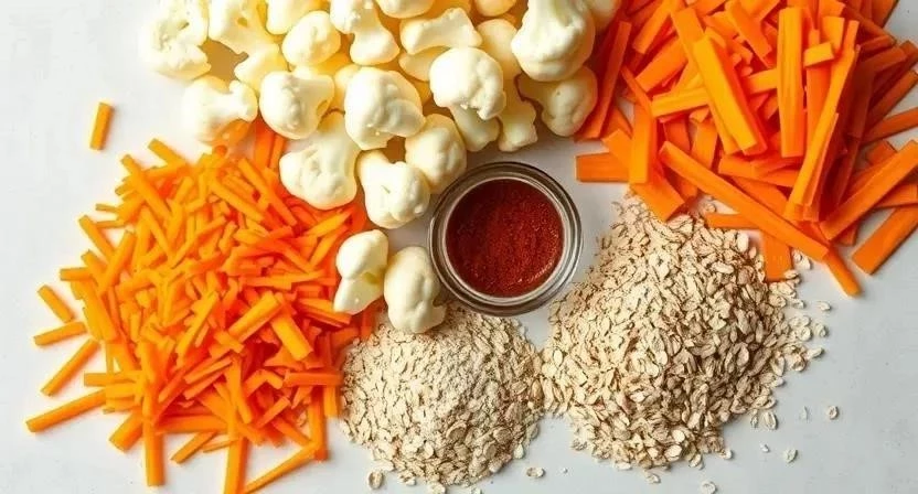 Для приготовления этих замечательных котлет нам понадобится совсем немного ингредиентов. Главное – выбрать качественные продукты. Морковь лучше брать сладкую и сочную, а цветную капусту – плотную и без темных пятен. Овсяные хлопья я предпочитаю брать быстрого приготовления, так как они лучше связывают фарш. А вот лук можно использовать любой, но я люблю добавлять красный, он придает котлетам более интересный вкус.