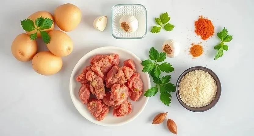 Для приготовления этих замечательных котлет нам понадобится всего несколько простых ингредиентов. Главное – выбрать качественный картофель и мясо. Я предпочитаю использовать картофель с высоким содержанием крахмала, чтобы котлеты получились более клейкими и не разваливались. Что касается мяса, то можно использовать любой фарш по вашему вкусу: куриный, говяжий, свиной или смешанный. Я обычно беру куриный фарш, так как он более диетический и нежный. Вот список ингредиентов с точными пропорциями: