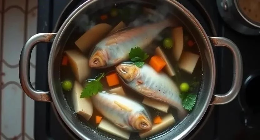 2. Как проверить готовность рыбы в ухе? Рыба должна легко отделяться от костей.