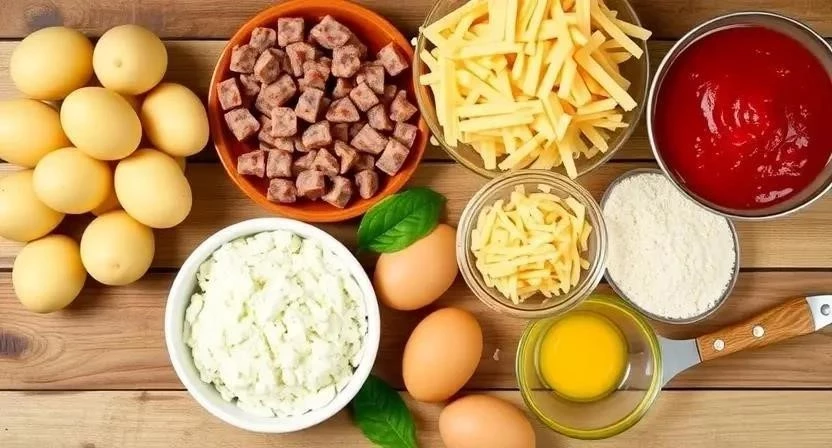 Для приготовления этих замечательных котлет нам понадобится не так много ингредиентов, и большинство из них наверняка уже есть у вас на кухне. Я всегда стараюсь выбирать картофель с небольшим содержанием крахмала, чтобы котлеты не разваливались. А вот где я обычно покупаю качественную колбасу и сыр – на местном фермерском рынке. Там продукты всегда свежие и вкусные.