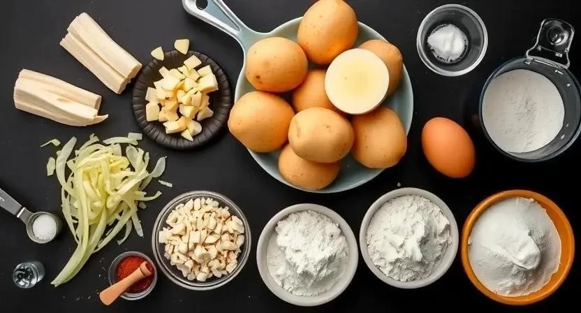 Для приготовления этих замечательных котлет нам понадобится совсем немного ингредиентов. Главное – выбрать качественный картофель и не жалеть чеснока! Я всегда стараюсь брать картофель с высоким содержанием крахмала, тогда котлеты получаются особенно нежными. А вот список того, что нам понадобится: