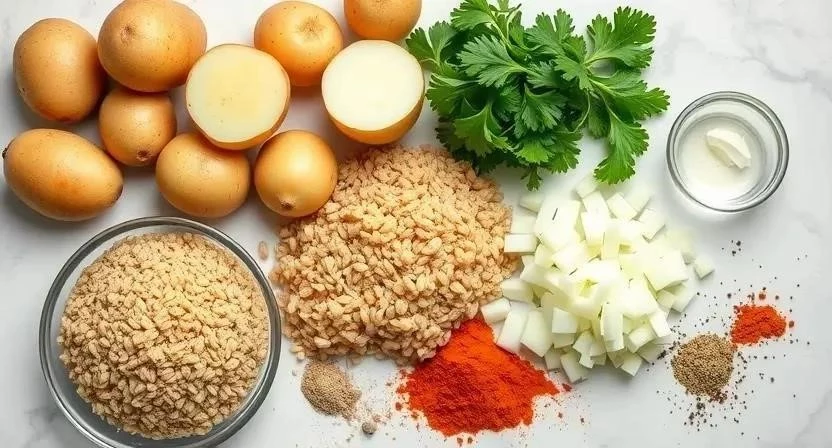 Для приготовления этих замечательных котлет нам понадобится совсем немного продуктов. Я всегда стараюсь выбирать самые свежие и качественные ингредиенты, это очень влияет на вкус. Лучше всего картофель брать рассыпчатый, а гречку – быстрого приготовления, чтобы сэкономить время. Лук я предпочитаю репчатый, он дает более насыщенный аромат. Фарш можно использовать любой, но я рекомендую куриный или индюшачий – они более диетические.
