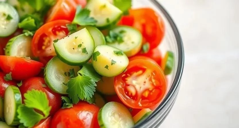 8. Заправка салата: Овощи смешиваем, добавляем сметану, соль и перец. Тщательно перемешиваем.