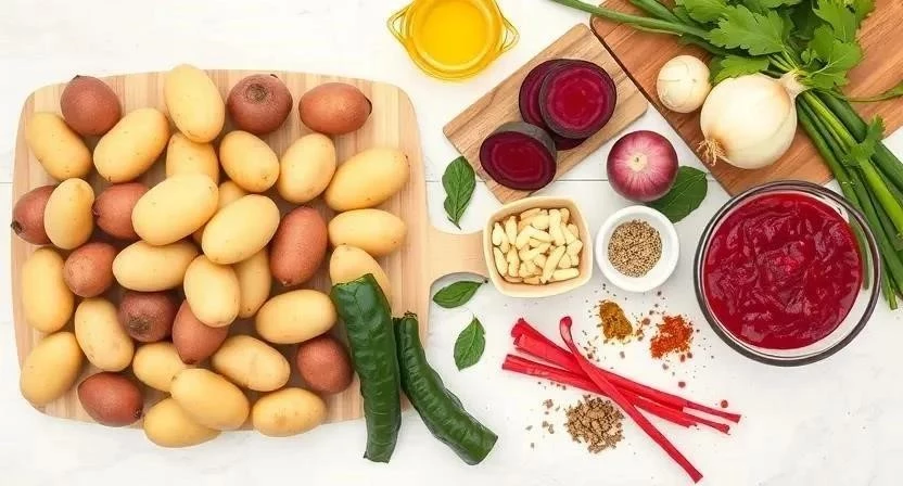 Картофель – это ценный источник углеводов, витаминов и минералов. Он содержит витамин С, калий, магний и клетчатку. Свекла богата антиоксидантами, которые помогают защитить организм от свободных радикалов.
