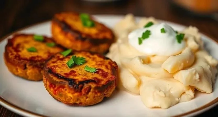 Я люблю подавать котлеты из тыквы с картофельным пюре и сметанным соусом с зеленью. Это простое, но очень вкусное сочетание!