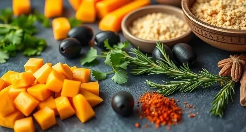 Все ингредиенты можно найти в любом супермаркете. Тыкву лучше выбирать осенью, когда она наиболее спелая и ароматная. Оливки и специи можно приобрести в отделе с бакалеей.